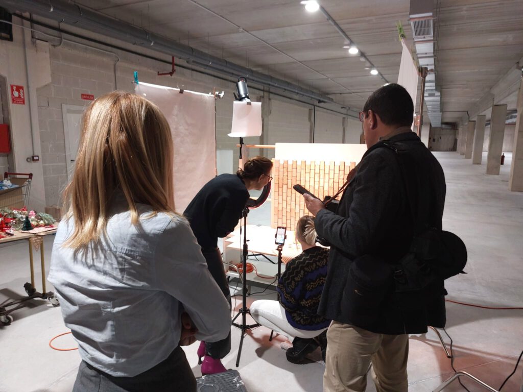 La alcaldesa observa cómo grabamos un vídeo para nuestras redes sociales