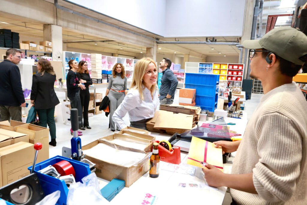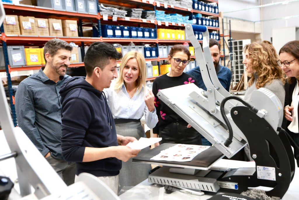 Junto a los fundadores de la empresa, la alcaldesa y su equipo recorrieron la nave y pudieron ver cómo es un día de trabajo en Regalo Original. Desde las oficinas donde trabajan los departamentos de Atención al Cliente y Marketing, hasta la planta de producción y logística. En esta última, nos encargamos de personalizar los productos, recibir la mercancía y asegurarnos de que todos nuestros pedidos salen correctamente y llegan a su destino.